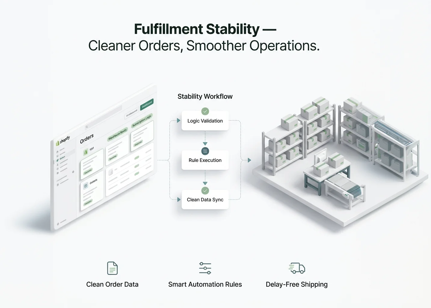 Loop's structured subscription logic produces predictable order data and flexible automation rules. Clear tagging, consistent rule logic, and clean order data flow seamlessly into Shopify and then into your warehouse — reducing exceptions, manual interventions, and shipping delays.