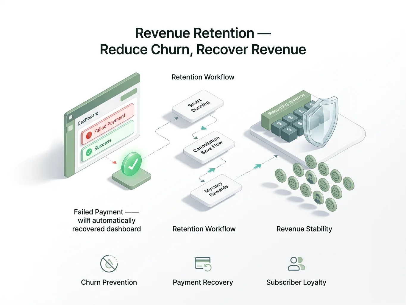 Failed payments silently drain recurring revenue. Without smart retry logic and backup payment methods, brands lose subscribers they never intended to lose — often without even realizing it until it shows up in MRR.