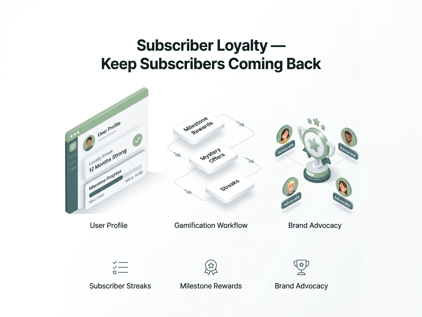 Subscribers who don't feel rewarded for consistency are more likely to churn. Milestone-based streaks and loyalty rewards gamify the subscription experience — turning transactional relationships into genuine brand loyalty.