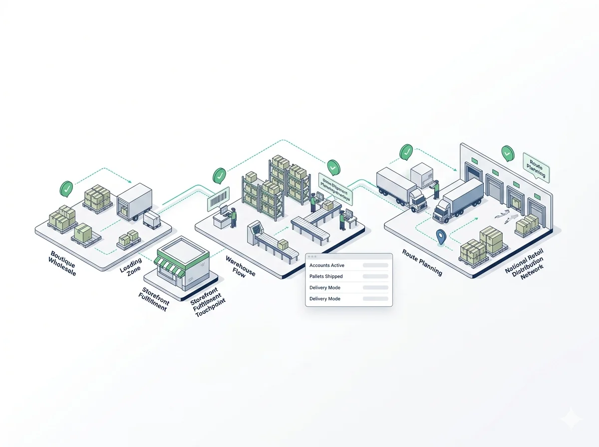 Retail Ready's infrastructure doesn't require you to choose between starting small and scaling big. Whether you're shipping your first wholesale pallet or coordinating FTL deliveries to national distribution centres, the same platform supports every stage — so you're never rebuilding your logistics as you grow.